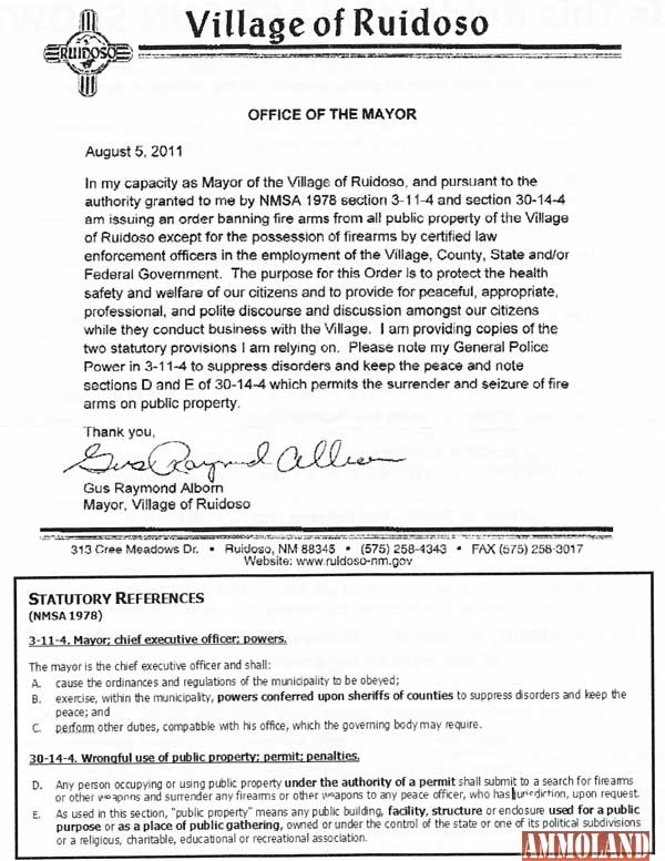 The city of Ruidoso, NM is having a city counsel meeting today. If anyone is near, the Alamogordo Second Amendment Task Force could use your help
